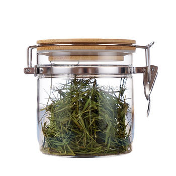 Food Storage High Borosilicate Custom Made Decorate Fancy Small Glass Storage Jar With Bamboo Lid