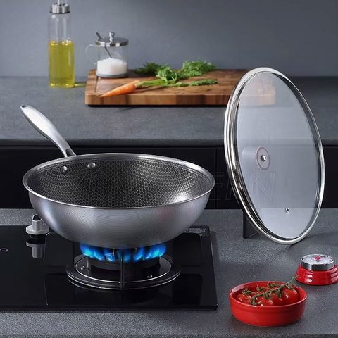 Hot người bán lai đồ nấu nướng tái sử dụng thép không gỉ nấu ăn Chảo thân thiện với môi tổ ong không dính Frying Pan hexclad đồ nấu nướng